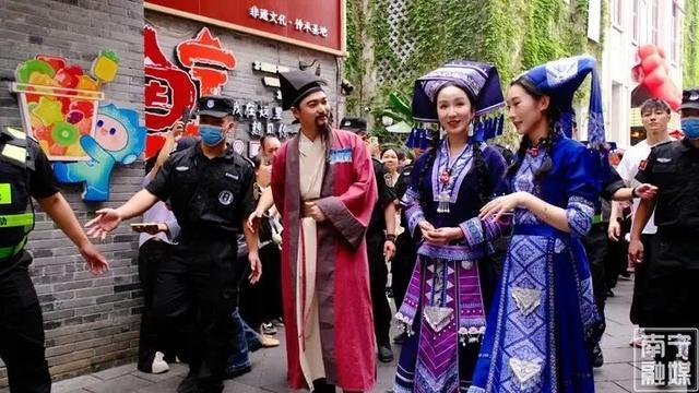 夕阳西下,暖风拂面,邕州古城的青石板路上早已东说念主声鼎沸。直播来源,娄艺潇身着广西特质民族衣饰,散步三街两巷、水街,身着民族衣饰的演员轻歌曼舞,讲理的氛围片刻感染了她。她不禁歌唱:“一来到南宁就感受到浓郁的‘三月三’氛围,到处是民族衣饰、荡漾村歌、风情歌舞。”这份发自内心的惊喜,说念出了广西三月三的吵杂氛围。