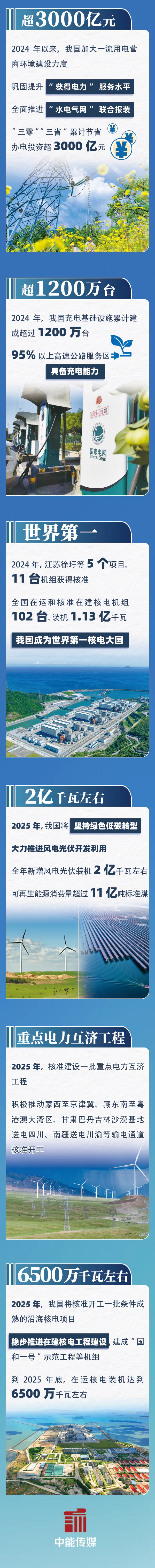 会议强调,2025年能源使命要相持以习近平新期间中国特点社会主张念念想为带领,全面贯彻党的二十大和二十届二中、三中全会精神,深入落实中央经济使命会议方案部署、世界发展和修订使命会议要求,相持稳中求进使命总基调,好意思满准确全面贯彻新发展理念,加速构建新发展形态,塌实推动高质地发展,更好统筹发展和安全,深入鼓舞能源创新,加速相关设立新式能源体系,连接深化能源领域体制机制修订,因地制宜发展新质出产力,高质地完成“十四五”相关方针任务,为终了“十五五”简陋开局打牢基础,在新的滥觞上发愤谱写能源高质地发展新篇章。一是深入学习贯彻习近平总秘书迫切陈说和迫切指令批示精神,以更高措施践行能源安全新计谋。加速相关设立新式能源体系,相持以科技创新为引颈、体制修订为能源、安全充裕为前提、经济可活动基础,冉冉建立以非化石能源为供应主体、化石能源为兜底保险、新式电力系统为要害赞助、绿色聪惠简约为用能导向的新式能源体系,推动贯彻落实能源安全新计谋获取更大效率。二是深入贯彻落实党的二十届三中全会精神,纵深鼓舞能源修订和法治设立。加速构建符合新式能源体系的体制机制,初步建成世界谐和电力市集,优化油气管网开动退换机制,鼓舞当然把持格式零丁运营和竞争性格式市集化修订,以贯彻扩充《能源法》为机会夯实能源法治根基。三是更好推崇导向引颈作用,统筹鼓舞能源相关编制扩充。加强相关扩充动态监测,力求“十四五”能源相关圆满收官。科学假想编制“十五五”能源相关,相持世界能源相关“总体一盘棋”理念,统筹推动省级能源相关编制。四是扛牢能源安全首要职责,全面增强供应保险身手。强化底线念念维和计谋定力,全力完成能源保供任务,推崇好煤炭煤电兜底保险作用,鼓舞油气增储上产,加强能源储备身手设立,连接鼓舞监测预警体系设立。五是相持绿色低碳转型,连接推动能源结构优化支持。放浪鼓舞风电光伏开采运用,统筹水电开采和生态保护,积极安全有序发展核电,统筹鼓舞新式电力系统设立。六是加速鼓舞科技自立自立,放浪发展能源领域新质出产力。加强国度科技紧要花样治理,连接鼓舞紧要时刻装备攻关示范,加强科技创新和措施化治理。七是经久相持问题导向,着力栽培市集监管举座效用。深化电力领域详尽监管,鼓舞能源领域专项监管,让监管信得过“长牙带刺”,确保国度能源政策落地奏效,栽培民生保险水平。八是牢固成立安全发展理念,全力作念好电力安全监监使命。完善电力安全治理体系,组织开展电力安全专项监管,作念好电力相聚安全使命。九是自若深化能源海外合营,加速构建立体多元合营新形态。栽培境外能源资源保险身手,强化能源及格调险属目,加强绿色能源合营,积极参与全球能源治理。十是加强党对能源使命的全面引导,相持不懈鼓舞全面从严治党。