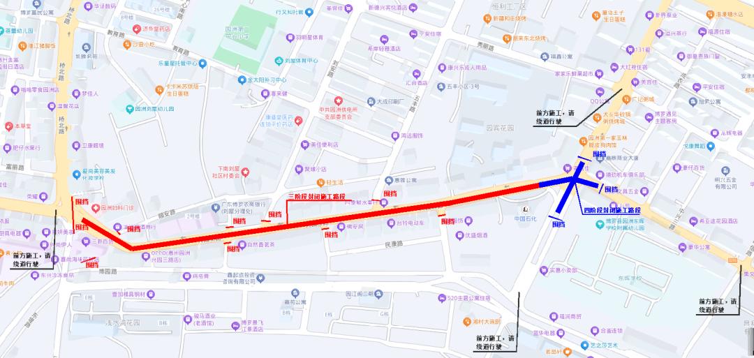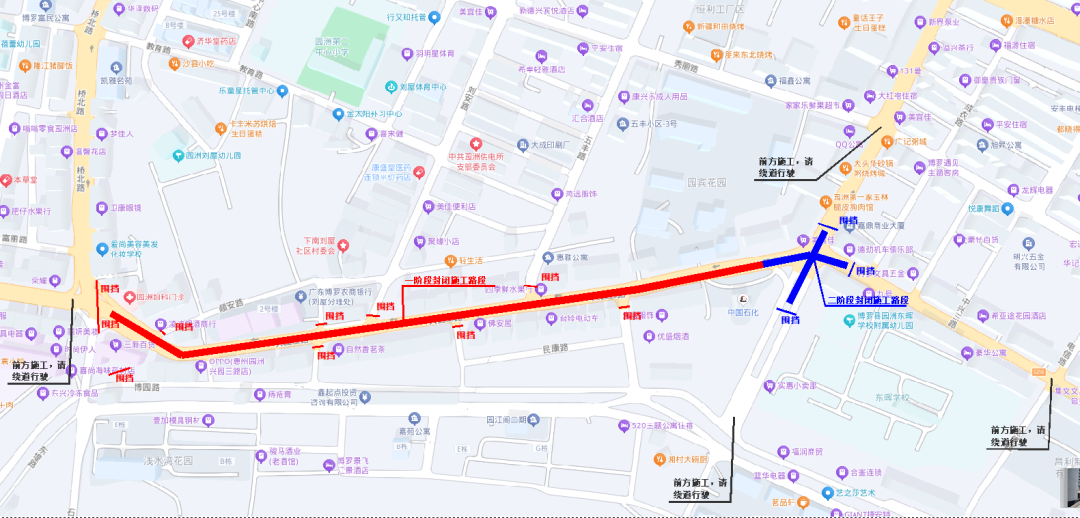 三阶段为兴园路(桥北路口至中园路口),闭塞时辰为:12月27日20:00至12月30日8:00。
