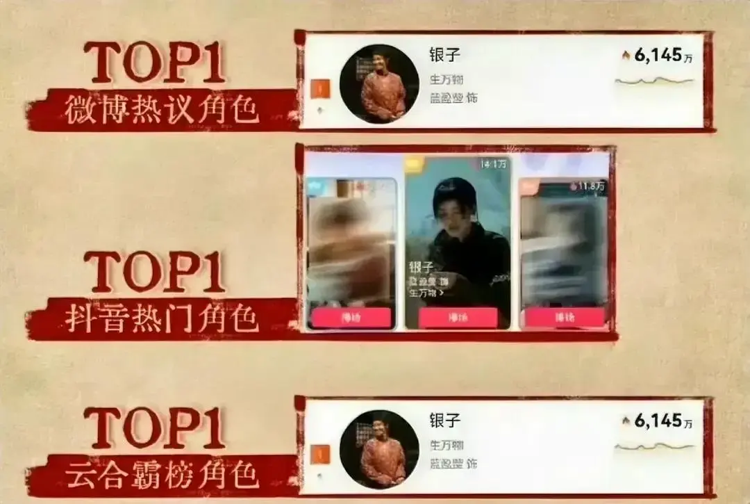 蓝盈莹既得了戏里的喝彩,还要抢场外的风头,在个东说念主变装的收官战报上,夸功自得,称银子的热度在各平台的榜单都第一。