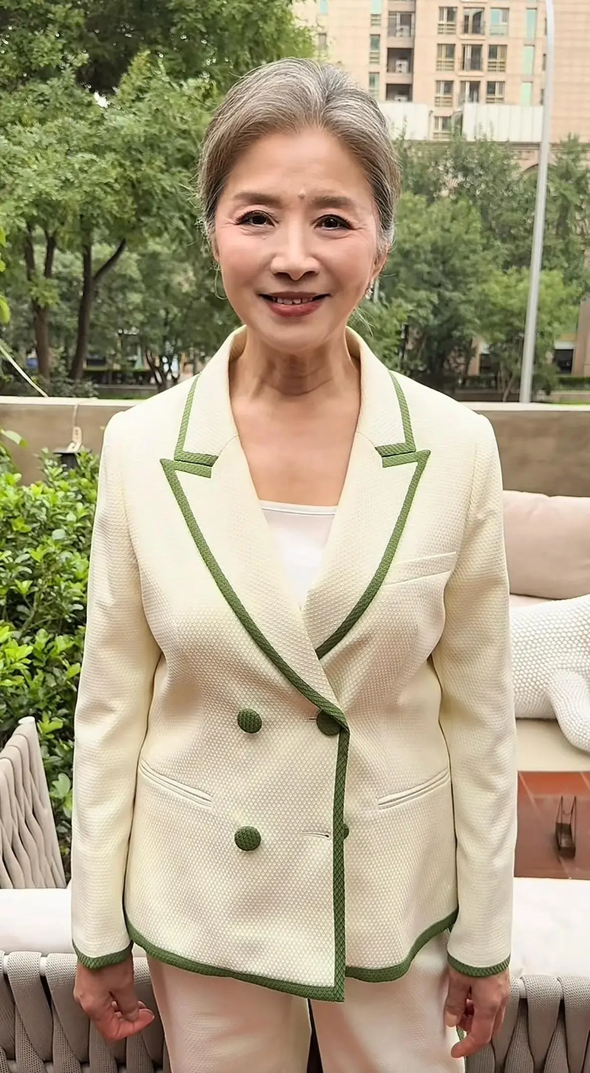 在其后庆功宴的合照上,迟蓬都被安排在一个比拟显眼的位置,林永健搂着,杨幂靠着,真意气风发一把,她头发斑白、神志慈祥,孑然知性的气质,和剧里两模两式。