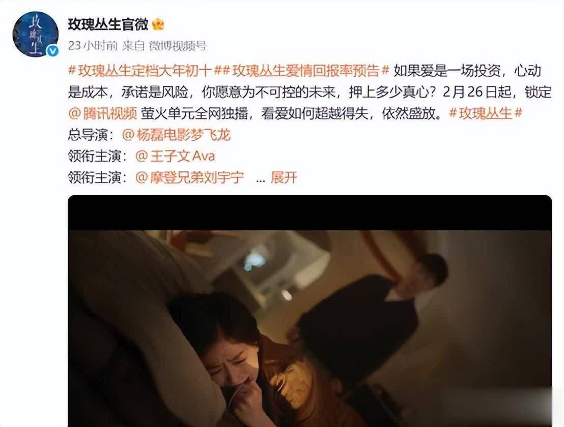 《玫瑰丛生》官宣定档大年头十(2月26日),将在鹅厂上线。