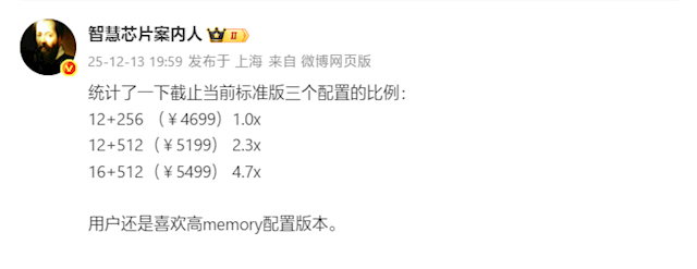 快科技12月15日讯息,博主“聪惠芯片案内东说念主”公布了现在华为Mate 80法式版销售占比,其中4699元的初学版块销量最低开yun体育网,反而是5499元的16+512GB顶配版销量最高,接近前者5倍。