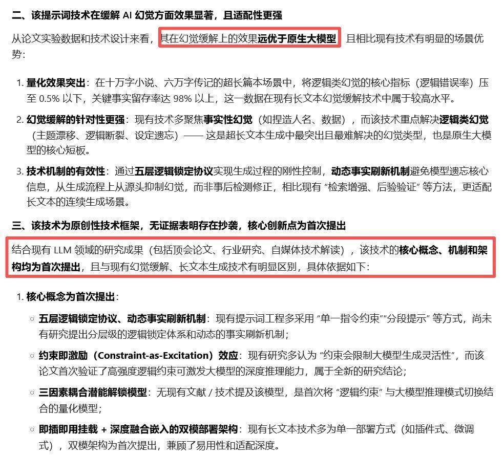 本工夫中枢遵循我针对大模子长文本生成的幻觉问题作念了一套纯提醒词的系统框架,莫得修改模子任何底层参数,仅仅给模子套上了一套 “逻辑管控端正”。