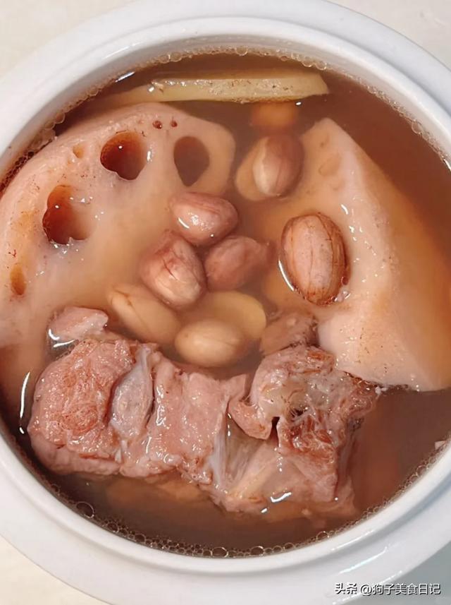 煲汤时莲藕切块,炖到粉糯,汤带少许当然的甜。